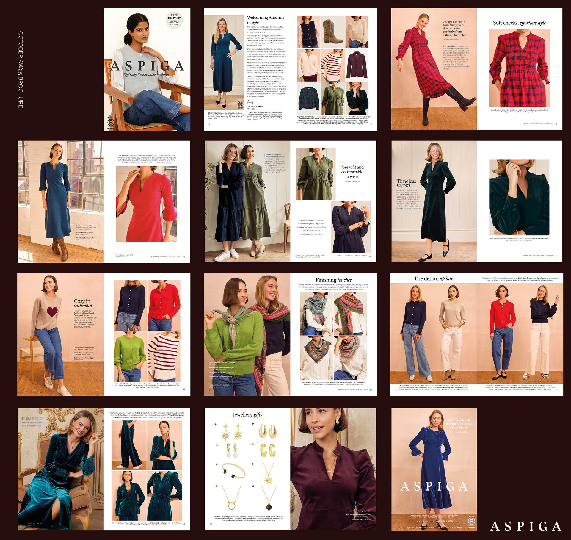 Each month I am responsible for the full design and production of Aspiga’s monthly brochure, circulated to up to 70,000 customers. My role covers image editing and retouching, page design and layout, colour management, and coordinating with print suppliers to meet strict production schedules and maintain brand consistency, showcasing the brand’s latest collections and stories.
